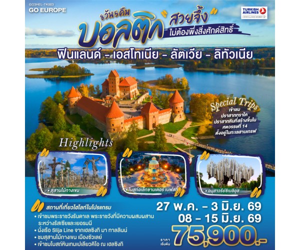 เอสโตเนีย ฟินแลนด์ ลิทัวเนีย ลัตเวีย คอนาส เฮลซิงกิ 8 วัน 5 คืน