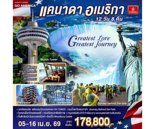 แคนาดา - อเมริกา Greatest Love - Greatest Journey 12 วัน 8 คืน โดยสายการบิน Emirates (EK)