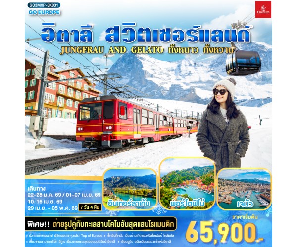 JUNGFRAU AND GELATO ทั้งหนาว .. ทั้งหวาน.. อิตาลี - สวิตเซอร์แลนด์ 7วัน 4 คืน โดยสายการบิน Emirates (EK)