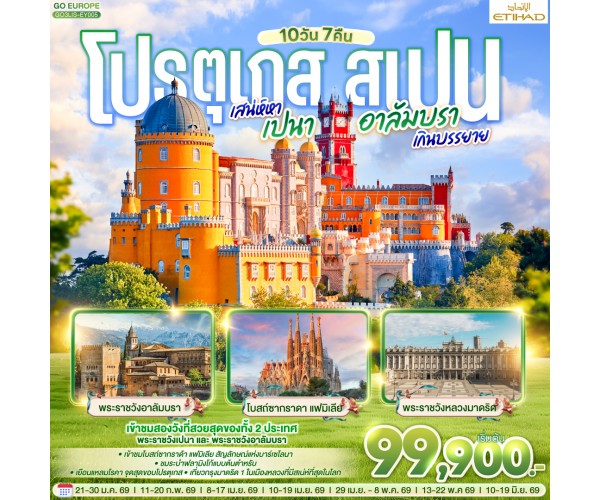 โปรตุเกส - สเปน เสน่ห์หาเปนา อาลัมบราเกินบรรยาย 10 วัน 7 คืน โดยสายการบินเอทิฮัด ETIHAD (EY)