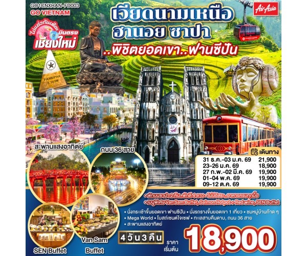 บินตรงเชียงใหม่ เวียดนามเหนือ ฮานอย ซาปา ..พิชิตยอดเขา..ฟานซีปัน 4 วัน 3 คืน โดยสายการบิน (FD) ** พักโรงแรม ระดับ 4 ดาว **