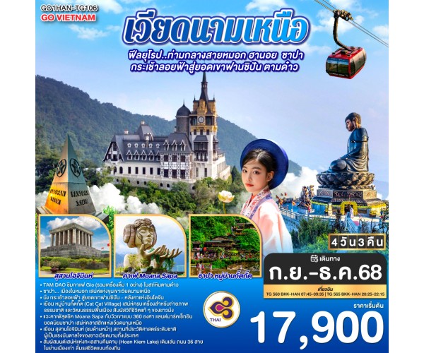 เวียดนามเหนือ Hà Nội TAM DAO ฟีลยุโรป..ท่ามกลางสายหมอก ฮานอย ซาปา กระเช้าลอยฟ้าสู่ยอดเขาฟานซิปัน ตามด๋าว 4 วัน 3 คืน สายการบินไทย Thai Airways (TG)