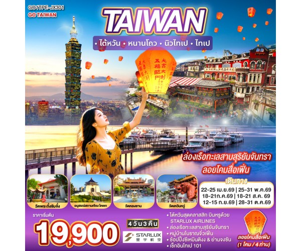 TAIWAN ไต้หวัน หนานโถว นิวไทเป ไทเป ล่องเรือทะเลสาบสุริยันจันทรา ลอยโคมสื่อเฟิ่น 4 วัน 3 คืน สายการบิน STARLUX AIRLINES (JX)