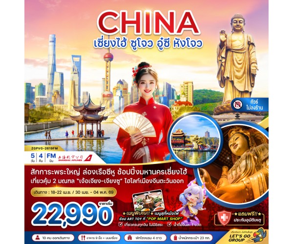ชื่อโปรแกรม : จีน เซี่ยงไฮ้ ซูโจว อู๋ซี หังโจว (ไม่ลงร้าน) (5 วัน 4 คืน)