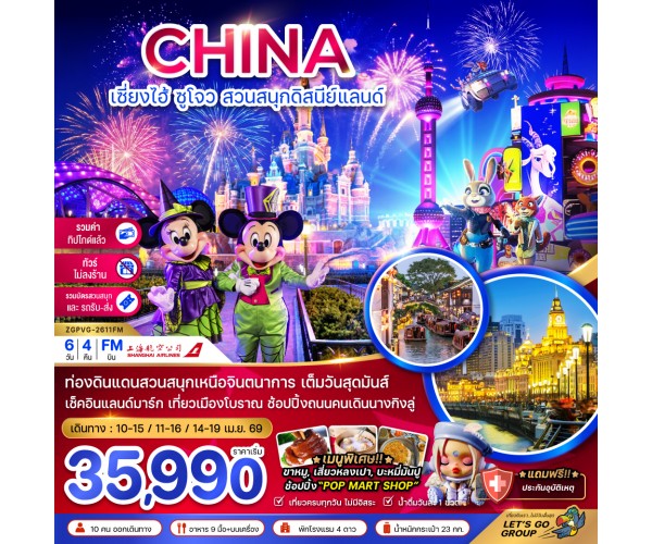 ชื่อโปรแกรม : จีน เซี่ยงไฮ้ ซูโจว สวนสนุกดิสนีย์แลนด์ (ไม่ลงร้าน-รวมบัตรสวนสนุกรถรับส่ง-รวมค่าทิปแล้ว) (6 วัน 4 คืน)