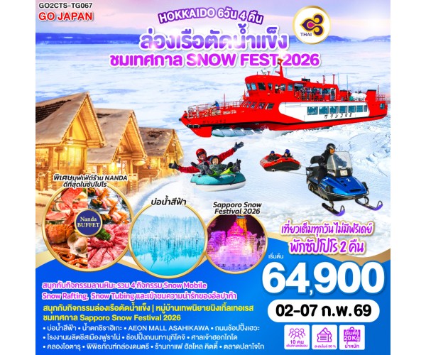 HOKKAIDO ล่องเรือตัดน้ำแข็ง ชมเทศกาล SNOW FEST 2026 6D 4N โดยสายการบินไทย [TG]