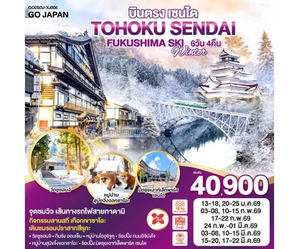 บินตรง TOHOKU SENDAI FUKUSHIMA SKI WINTER 6D 4N โดยสายการบินไทยแอร์เอเชีย เอ็กซ์ [XJ]