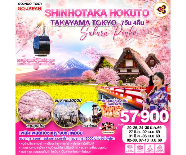 SHINHOTAKA HOKUTO TAKAYAMA TOKYO SAKURA PINKU 7D 4N โดยสายการบินไทย [TG]