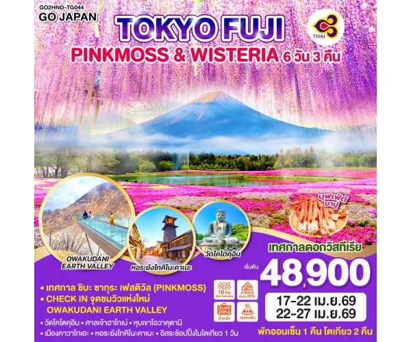 TOKYO FUJI PINKMOSS & WISTERIA 6D 3N โดยสายการบินไทย [TG]