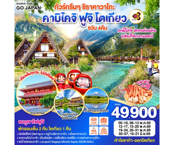 ทัวร์กรีนๆ ชิราคาวาโกะ คามิโคจิ ฟูจิ โตเกียว 6D 4N โดยสายการบินไทย [TG]
