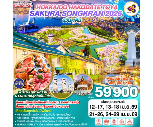 HOKKAIDO HAKODATE TOYA SAKURA SONGKRAN 2026 6D 4N โดยสายการบินไทย [TG]