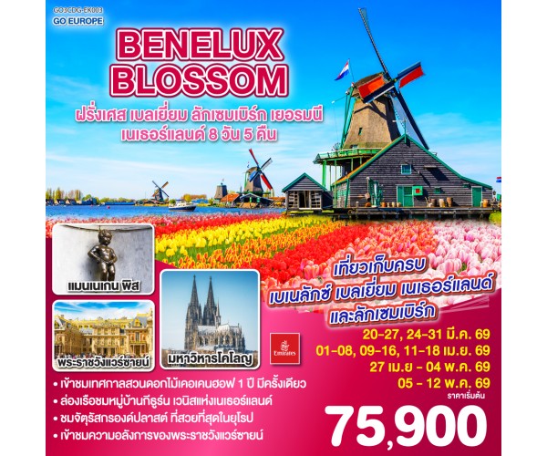 BENELUX BLOSSOM ฝรั่งเศส เบลเยี่ยม ลักเซมเบิร์ก เยอรมนี เนเธอร์แลนด์ 8วัน 5คืน โดยสายการบิน Emirates (EK)