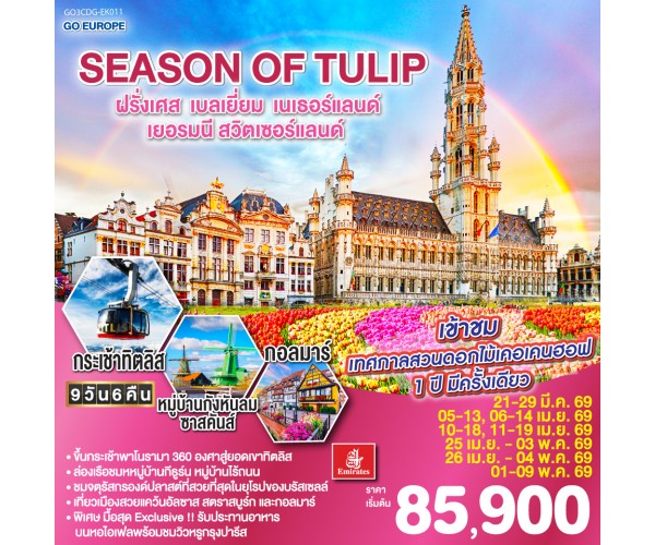 SEASON OF TULIP ฝรั่งเศส - เบลเยี่ยม - เนเธอร์แลนด์ - เยอรมนี - สวิตเซอร์แลนด์ 9 วัน 6 คืน โดยสายการบิน Emirates (EK)