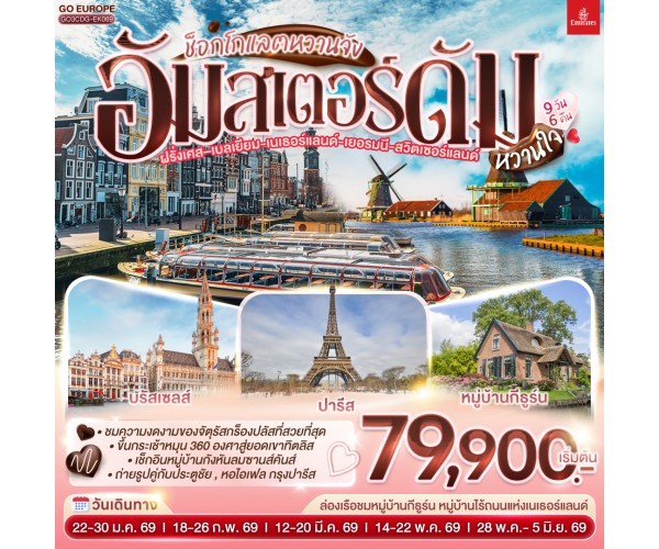 ช็อกโกแลตหวานจัง อัมสเตอร์ดัมหวานใจ ฝรั่งเศส – เบลเยี่ยม - เนเธอร์แลนด์ เยอรมนี - สวิตเซอร์แลนด์ 9 วัน 6 คืน โดยสายการบินเอมิเรทซ์ (EK)