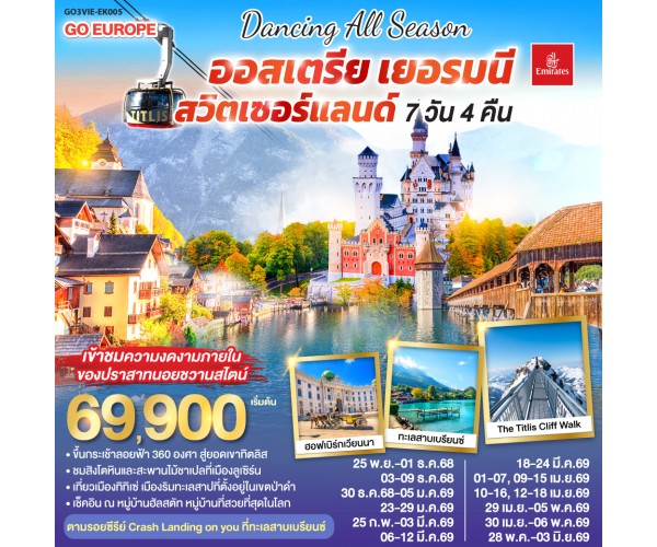 DANCING ALL SEASON ออสเตรีย - เยอรมนี - สวิตเซอร์แลนด์ 7 วัน 4 คืน โดยสายการบิน EMIRATES (EK)