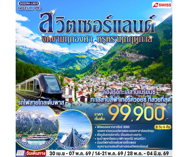 สวิตเซอร์แลนด์ งดงามทุกองศา หรูหราทุกฤดูกาล 8 วัน 6 คืน โดยสายการบินสวิสแอร์ (LX)