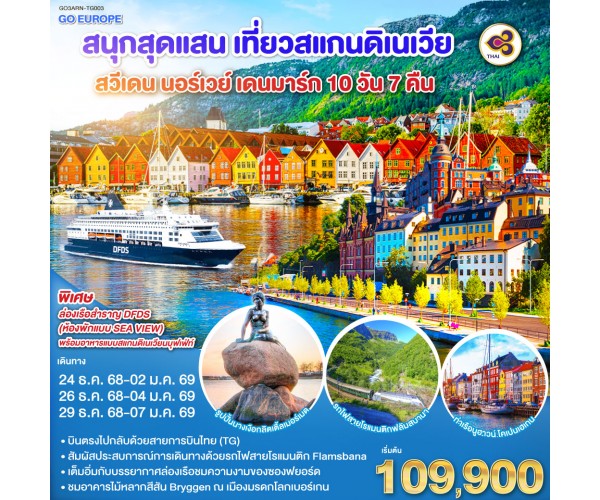 สนุกสุดแสน เที่ยวสแกนดิเนเวีย สวีเดน นอร์เวย์ เดนมาร์ก 10 วัน 7 คืน โดยสายการบินไทย