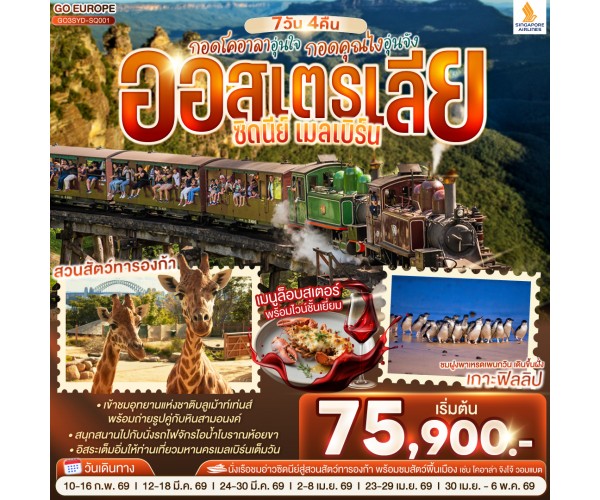 กอดโคอาลาอุ่นใจ กอดคุณไงอุ่นจัง ออสเตรเลีย ซิดนีย์ เมลเบิร์น 7 วัน 4 คืน โดยสายสิงคโปร์ (SQ)