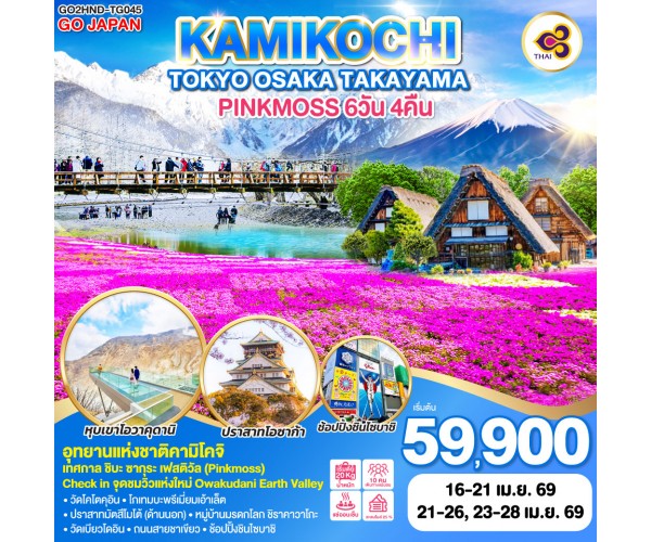 TOKYO OSAKA TAKAYAMA KAMIKOCHI PINKMOSS 6D 4N โดยสายการบินไทย [TG]