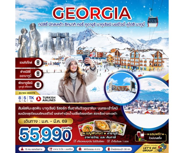 จอร์เจีย ทบิลิซี่ มิทสเคต้า ซิกนากิ กอรี่ กูดาอูรี บากูเรียนิ บอร์โจมี่ คูไตซี บาทูมี่ (เข้าทบิลิซี่-ออกบาทูมี่-รวมทิปไกด์)