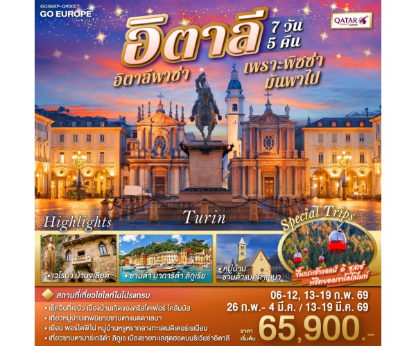 อิตาลีพาซ่า เพราะพิซซ่ามันพาไป อิตาลี 7 วัน 5 คืน โดยสายการบิน QATARS (QR)