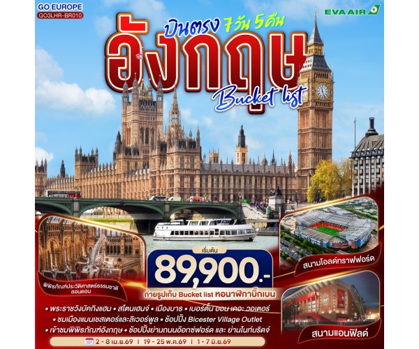 อังกฤษ Bucket list บินตรง 7 วัน 5 คืน โดยสายการบิน EVA Air (BR)