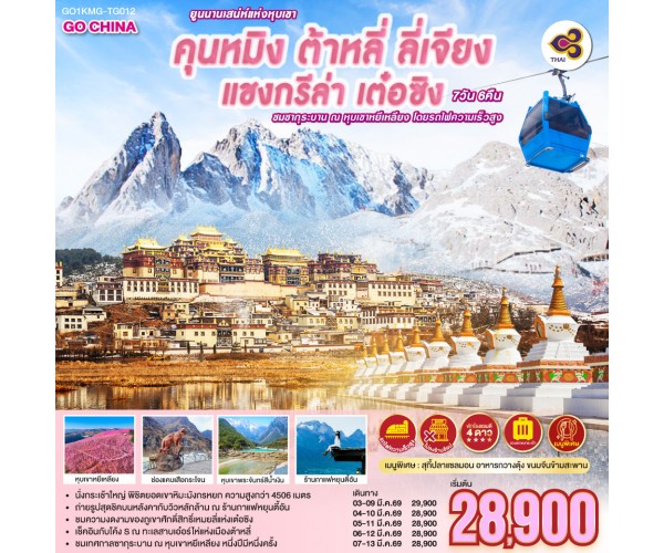 คุนหมิง ต้าหลี่ ลี่เจียง แชงกรีล่า เต๋อซิง ยูนนานเสน่ห์แห่งหุบเขา ชมซากุระบาน ณ หุบเขาหยีเหลียง โดยรถไฟความเร็วสูง 7 วัน 6คืน ไม่ลงร้านรัฐบาล โดย การบินไทย (TG)
