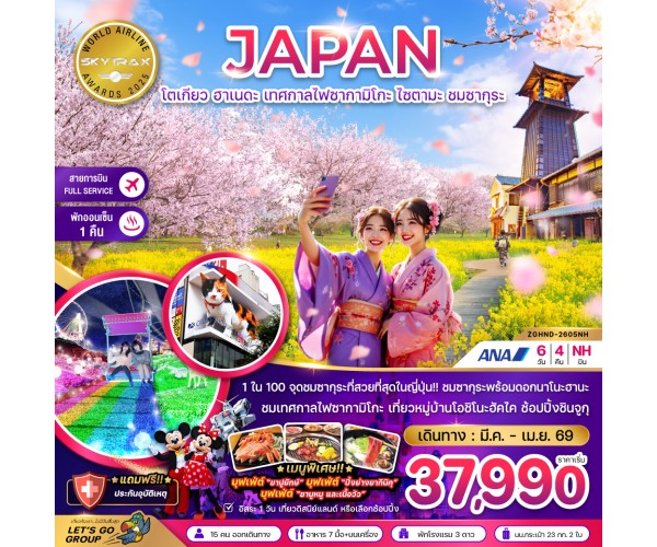 โตเกียว ฮาเนดะ เทศกาลไฟซากามิโกะ ไซตามะ ชมซากุระ (เที่ยวอิสระ 1 วัน)