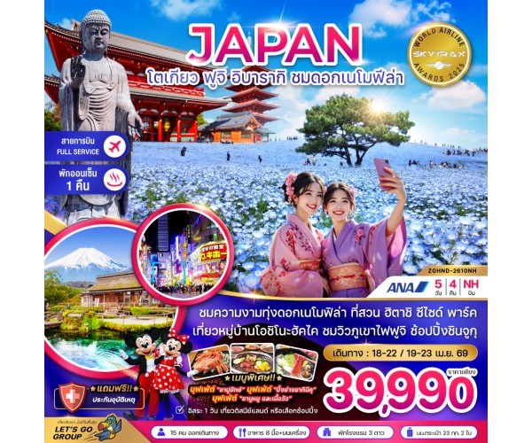 โตเกียว ฟูจิ อิบารากิ ชมดอกเมโมฟีล่า (เที่ยวอิสระ 1 วัน)