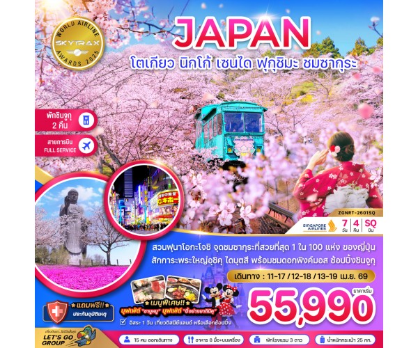 โตเกียว นิกโก้ เซนได ฟุกุชิมะ ชมซากุระ (เที่ยวอิสระ 1 วัน)