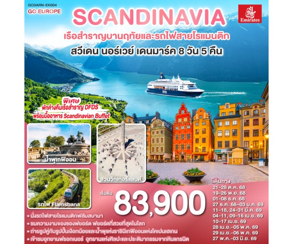 SCANDINAVIA - สแกนดิเนเวีย เรือสำราญบานฤทัยและรถไฟสายโรแมนติก สวีเดน - นอร์เวย์ - เดนมาร์ก 8 วัน 5 คืน โดยสายการบิน Emirates (EK)