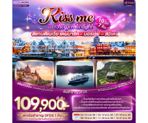 KISS ME UNDER BERGEN TWIGHT LIGHT SCANDINAVIA สแกนดิเนเวีย เดนมาร์ก - นอร์เวย์ –สวีเดน 10 วัน 7 คืน โดยสายการบินไทย (TG)