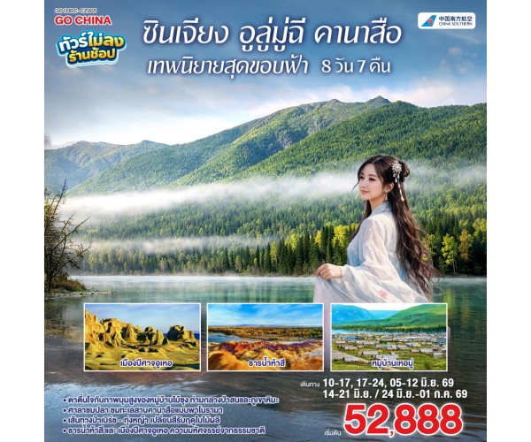 ซินเจียง อูลู่มู่ฉี คานาสือ เทพนิยายสุดขอบฟ้า 8 วัน 7 คืน โดยการบิน ไชน่า เซาเทิร์น (CZ)