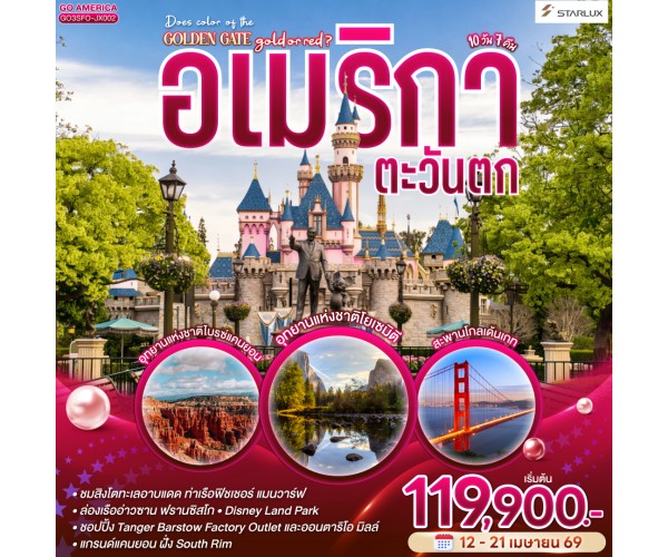 อเมริกาตะวันตก DOES COLOR OF THE GOLDEN GATE GOLD OR RED ? ซาน ฟรานซิสโก - โยเซมิตี - ลาส เวกัส – ไบรซ์แคนยอน – แอนทิโลปแคนยอน – แกรนด์แคนยอน - ลอส แองเจลิส 10 วัน 7 คืน โดย STARLUX Airlines (JX)