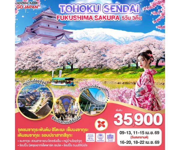 TOHOKU SENDAI FUKUSHIMA SAKURA 5D 3N โดยสายการบินไทยแอร์เอเชีย เอ็กซ์ [XJ]