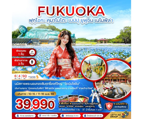 ชื่อโปรแกรม : ฟุกุโอกะ คุมาโมโตะ เบปปุ ยูฟูอิน เนโมฟีล่า (เที่ยวอิสระ 1 วัน) (6 วัน 4 คืน)
