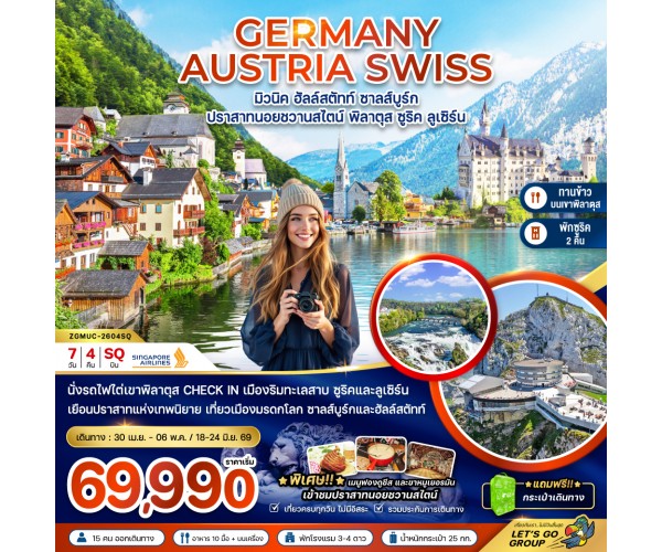 ชื่อโปรแกรม : เยอรมัน ออสเตรีย สวิตเซอร์แลนด์ (ปราสาทนอยชวานสไตน์ เขาพิลาตุส) (7 วัน 4 คืน)
