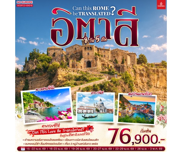 อิตาลี Can This Rome Be Translated? 8 วัน 5 คืน โดยสายการบิน EMIRATES (EK)