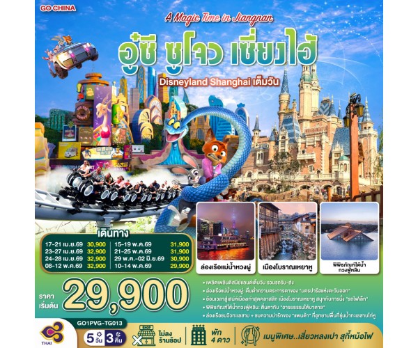 - เพลิดเพลินดิสนีย์แลนด์เต็มวัน รวมรถรับ-ส่ง - ล่องเรือแม่น้ำหวงผู่: ดื่มด่ำความตระการตาของ "นครปารีสแห่งตะวันออก" - ย้อนเวลาสู่เสน่ห์เมืองเก่าสุดคลาสสิก เมืองโบราณเหยาหู สนุกกับการนั่ง "รถไฟเล็ก" - พิพิธภัณฑ์ใต้น้ำกวงฟู่หลิน: ตื่นตากับ "อารยธรรมใต้บาดาล" - ล่องเรือชมวิวทะเลสาบ + ชมความน่ารักของ "แพนด้า" ที่อุทยานพื้นที่ชุ่มน้ำทะเลสาบไท่หู