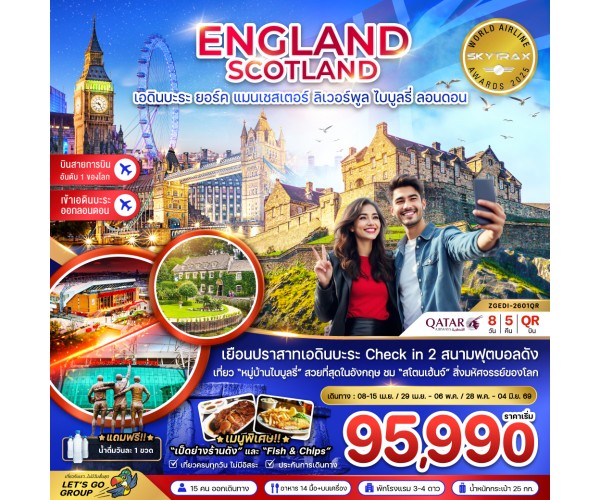 ชื่อโปรแกรม : อังกฤษ สกอตแลนด์ (เอดินบะระ เเมนเซสเตอร์ ลิเวอร์พูล ออกซ์ฟอร์ด บาธ ลอนดอน) (8 วัน 5 คืน)