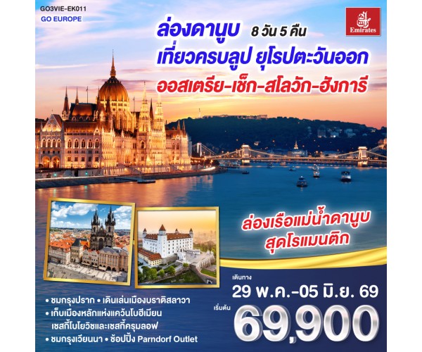 ล่องดานูบ เที่ยวครบลูป ยุโรปตะวันออก ออสเตรีย-เช็ก-สโลวัก-ฮังการี 8 วัน 5 คืน โดยสายการบิน Emirates (EK)