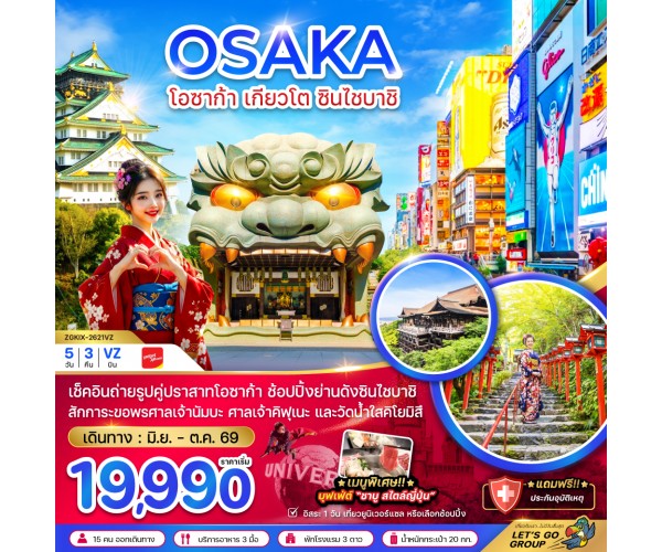 ชื่อโปรแกรม : โอซาก้า เกียวโต ชินไซบาชิ (เที่ยวอิสระ 1 วัน) (5 วัน 3 คืน)
