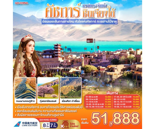 ซินเจียง คาชการ์ ความทรงจำแห่งซินเจียงใต้ ย้อนรอยเส้นทางสายไหม หัวใจแห่งคัชการ์ ทะเลสาบไป๋ซาหู 8 วัน 7 คืน โดยการบิน ไชน่า เซาเทิร์น (CZ)