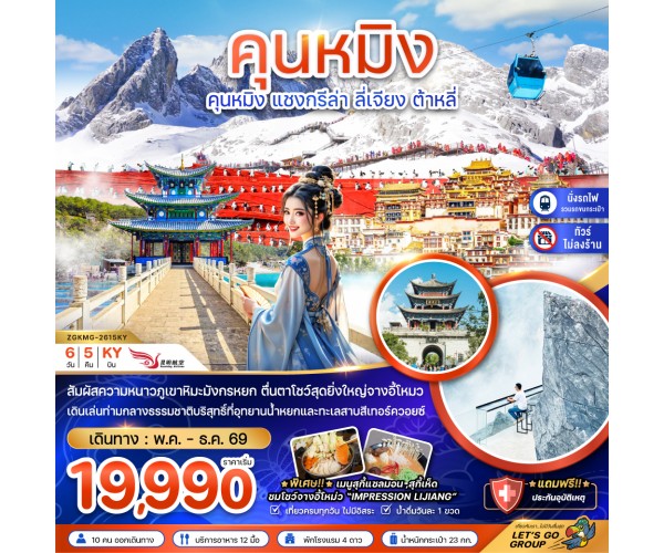 ชื่อโปรแกรม : จีน คุนหมิง แชงกรีล่า ลี่เจียง ต้าหลี่ (ไม่ลงร้าน-นั่งรถไฟความเร็วสูง-รวมรถขนกระเป๋า) (6 วัน 4 คืน)