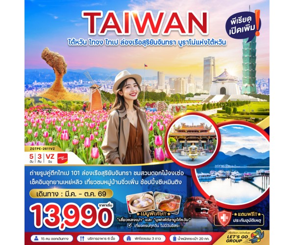 ชื่อโปรแกรม : ไต้หวัน ไทจงไทเป ล่องเรือสุริยันจันทรา บูราโน่แห่งไต้หวัน (5 วัน 3 คืน)