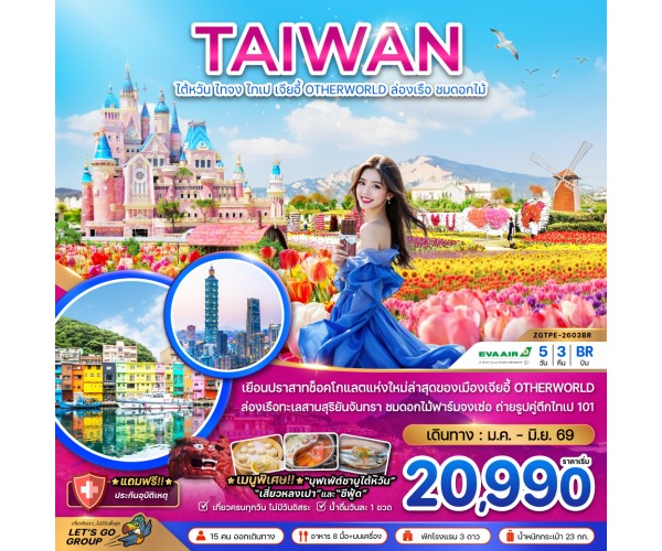 ชื่อโปรแกรม : ไต้หวัน ไทจง ไทเป เจียอี้ OTHERWORLD ล่องเรือสุริยันจันทรา (ชมดอกไม้) (5 วัน 3 คืน)