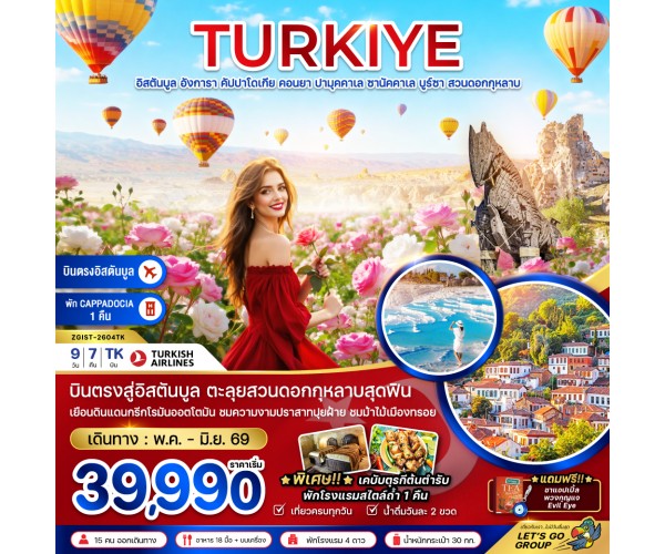 ชื่อโปรแกรม : ตุรเคีย อิสตันบูล อังการา คัปปาโดเกีย คอนยา ปามุคคาเล ซานัคคาเล บูร์ซา (สวนดอกกุหลาบ) (9 วัน 7 คืน)